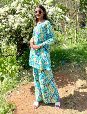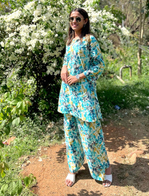 Turquoise Pure Cotton Printed Co Ord Set